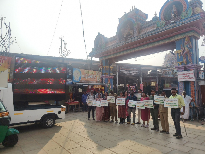 മാര്ച്ച് മൂന്നിന് നടക്കുന്ന ആറ്റുകാല് പൊങ്കാല മഹോത്സവം പൂര്ണമായും ഹരിതചട്ടങ്ങള് പാലിച്ച് നടത്തുന്നതിനായി കുടിവെള്ളം-ഭക്ഷണ വിതരണക്കാര്, സന്നദ്ധ സംഘടനകള്, ഭക്തജനങ്ങള്, എന്നിവര്ക്കുള്ള നിര്ദ്ദേശങ്ങള് ഉള്പ്പെടുത്തിയ ശുചിത്വ മിഷന്റെ എല്.ഇ.ഡി ഡിസ്പ്ലേ വാഹനം മേയര് വി വി രാജേഷും ക്ഷേത്രം ട്രസ്റ്റ് പ്രസിഡന്റ് വി. ശോഭയും ചേര്ന്ന് ഫ്ലാഗ് ഓഫ് ചെയ്തു.